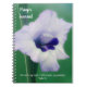 The front of this journal spiral notebook features my original close-up photograph of a Gladiolus flower in a garden, processed in artsy purple blue tone. Bible Scripture from Psalm 5:1 is at the bottom of the image and the words "Prayer Journal" is also on the image, at the top left.