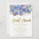 Blue Purple Gold Rose Floral Bouquet Bridal Shower Invitation