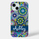 Blue Purple Green Retro Floral Pattern with Name Case-Mate iPhone Case