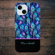 The vivid blue and purple peacock feathers form a fascinating, almost tribal pattern in this deign. Each feather has additional symbols and patterns embedded within it for an inspirational look. Your or your recipient's name appears in script against a colorblock of black at the top of this distinctive phone case, available on multiple styles of iphone and Samsung cases.
