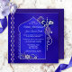 Indigo blue and deep purple wedding invitation featuring an elegant henna mehndi or tattoo inspired design resembling those seen in India or the Middle East.