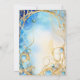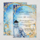 A beautiful watercolor pale and dark blue faux gold floral oval frame has a pastel blue ballgown adorned withrose flowers in the bottom left corner. The border frames black calligraphy script templates that may be personalised to suit your special requirements. Small blue butterflies appear above and below the templates and tiny glitter diamonds appear along the top edge giving the overall design a sparling look. This elegant, luxurious and trendy art nouveau inspired design is ideal for your daughter celebrating her 15th quinceañera birthday; a girly special milestone celebration or if you are hosting a bridal shower for a bride to be. Suited to summer, spring, winter and fall events, this invite is sure to dazzle.