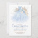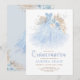 When it comes to your daughter's quinceañera, you really only have one opportunity to make her feel like the princess of the day. Make sure all of their friends and family come by with this elegant invitation. The design features a sparkly baby blue glitter dress adorned with pampas grass, light blue and cream roses and soft greenery. Click the "customise further" button if you wish to re-arrange and format the style and placement of the text.