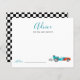 Fun race car theme boy baby shower advice cards featuring watercolor illustration of a blue vintage car with red flame art. Ask the guests to fill out this card during the shower. It will be a great keepsake!