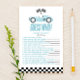 This is a Blue Race Car Guess Who! Baby Shower Game.