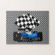 Blue Race Car with Chequered Flag Jigsaw Puzzle