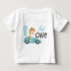 Blue Racing Car Giraffe 1st Birthday T-shirt
