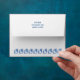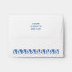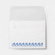 A custom A2 envelope with your return address on the back in art deco letters and a border of blue sailboats sailing across the bottom of the envelope.