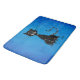 Black cat bath mat with a ragged evil black cat who has already lived eight of its nine lives over textured blue background. It's still mean, though. This evil black cat illustration will make a great gift for someone who loves cats and/or likes dark, grunge and gothic stuff. This is a mean cat. It has crafted that look in its eyes that says "Keep away" through hardship and pain and is still strong.
