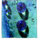 Droplets of water on a leaf after rain alienated into a blue colour. A macro nature photography by Katho Menden. This shower curtain is a gift idea for nature lovers. http://www.zazzle.com/kathom_photo