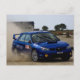 Blue rally car postcard