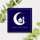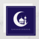 Blue Ramadan Mubarak Crescent Moon Mosque Holiday Card