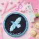 A simple, glowing, blue-and-white line image of a Raven (Corvus corax) on a starry background image. Add your own text.
