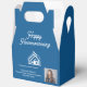 This professional blue and white favor box is customized with your real estate company name and realtor photo under the modern cursive script. Congratulate your clients on a Happy Housewarming with these custom congratulations boxes. Add your realty agent photo for marketing underneath the modern house logo.