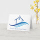 This classy modern real estate company card is custom made with your realty business under the the agent name in blue typography. The artistic blue wave design underneath a house with a weather vane on top combines contemporary with classic for a realtor logo that will appeal to many different home buying clients. Personalised for your marketing and mailer needs.