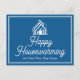 This customized professional happy housewarming or home anniversary postcard is custom made with your real estate company name under the white modern script. These elegant blue realty business postcards feature a house logo. Add your realtor contact details and message on the back.