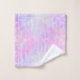 Towel set with an abstract background pattern. Pink purple and blue watercolors make up this artistic design which features vertical rectangle shapes on a soft mottled background.