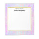 A notepad with an abstract background pattern. Pink purple and blue watercolors make up this artistic design which features vertical rectangle shapes on a soft mottled background. A square layered over top with a faux gold foil border, for you to write inside.