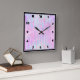 Blue Rectangle Shapes on Pink Background Square Wall Clock