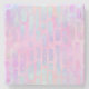 A stone coaster with an abstract background pattern. Pink purple and blue watercolors make up this artistic design which features vertical rectangle shapes on a soft mottled background.