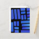 A geometric pattern with varying sizes of rectangle shaped tiles in pretty shades of blue and purple on a black background.