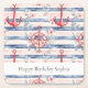 Blue Red Anchors Floral Stripes Beach Birthday Square Paper Coaster