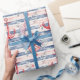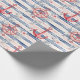 Blue Red Anchors Floral Stripes Beach Birthday Wrapping Paper
