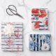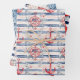 Blue Red Anchors Floral Stripes Beach Birthday Wrapping Paper Sheet