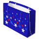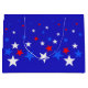 Five pointed star pattern in blue, red and white colour on blue background. Abstract space design.