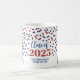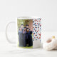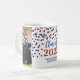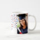 Customisable photo template class of 2025 graduation mug with blue and red confetti pattern.
