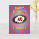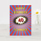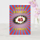 The background for this eye-catching birthday card is an explosion in deep red and blue, with a yellow-edged central cloudburst. There is a vintage comic retro vibe to the design with crisp bright colours and images. Edit the Happy Birthday greeting, edit the number, change the name, and personalise the message inside as well (or use the default "40 years old? I don't believe it. I demand a recount!")