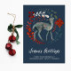 Blue Red Deer Wreath Nordic Folk Business Holiday Postcard