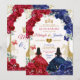 Blue Red Floral Elegant Twins Girls Quinceanera Invitation