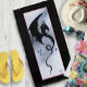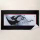 Black tribal dragon with a blue grey backdrop with small red flowers and red border.