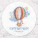 "Happy Birthday" Quote Typography. Watercolor hot air balloon in red, white, blue and yellow. blue cloud, and yellow stars. Gender neutral for boys or girls.