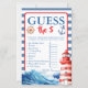 Set sail for some giggles with this delightful nautical "Guess the Price" baby shower game card! Our designer, a lover of lively gatherings and clever entertainment, envisioned a game that would bring a splash of competitive fun to your celebration. This isn't just a game card; it's an invitation to a playful challenge, perfect for getting your guests laughing and guessing the cost of baby essentials. It's an excellent way to create memorable moments at your baby boy's shower!