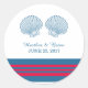 Elegant and classic Nautical Sea Shells Wedding Stickers with a pair of simple seashells and an array of stripes in dark navy blue and red. These nautical beach themed stickers can be easily customised with your wedding details. For more customisation options, click on the Customise It button.