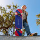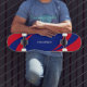 Blue and red wavy lines with blue centre and calligraphy Skateboard.