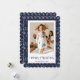 Nostalgic blue, red and white ugly sweater photo Merry Christmas card featuring Santa Claus, reindeer, snowflakes and trees. Easily personalise this ugly sweater holiday card with your photo and family name.