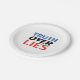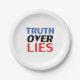 Blue, red, white "truth over lies" party paper plate