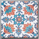 Delft floral tile art retouched and reproduced from an actual antique tile. It has a hand-painted feel and features a classic red, blue and white floral pattern of cornflowers and geometric elements.