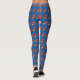 Leggings feature an original marker illustration of a row of red, yellow, and blue snocones, printed on a blue background.