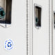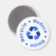 White magnet with recycling symbol and Reduce - Reuse - Recycle in blue lettering.