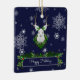 Decorate your tree this holiday season with a Blue Reindeer Ceramic Ornament. Ornament design features a festive reindeer wearing a Christmas wreath adorned with holly berries and falling snowflakes and a holiday greeting box decorated with holiday garland. Additional gift and holiday items available with this design as well.