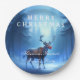 Blue Reindeer Merry Christmas Family Party Paper Plate