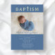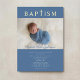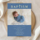 Personalised Blue Religious Cross Boy Baptism Photo Gold Foil Invitation.