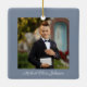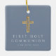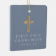 Blue Religious Cross First Communion Photo Ceramic Ornament