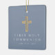 Personalised Blue Religious Cross First Communion Photo Ceramic Ornament. Part of the Dusty Blue Cross Boy First Communion Invitation Suite with matching invitation, stationery and party accessories available.