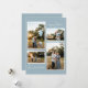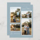 Blue Retro Boho Minimalist Four Photo Collage Holiday Card
