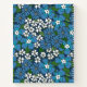 Retro floral notebook with flowers and greenery in blue, white, and green. Add your initial, name, and the purpose of the notebook in blue against a printed pale green label. A spiral notebook printed with a retro floral pattern with hand-drawn flowers in blue and white.